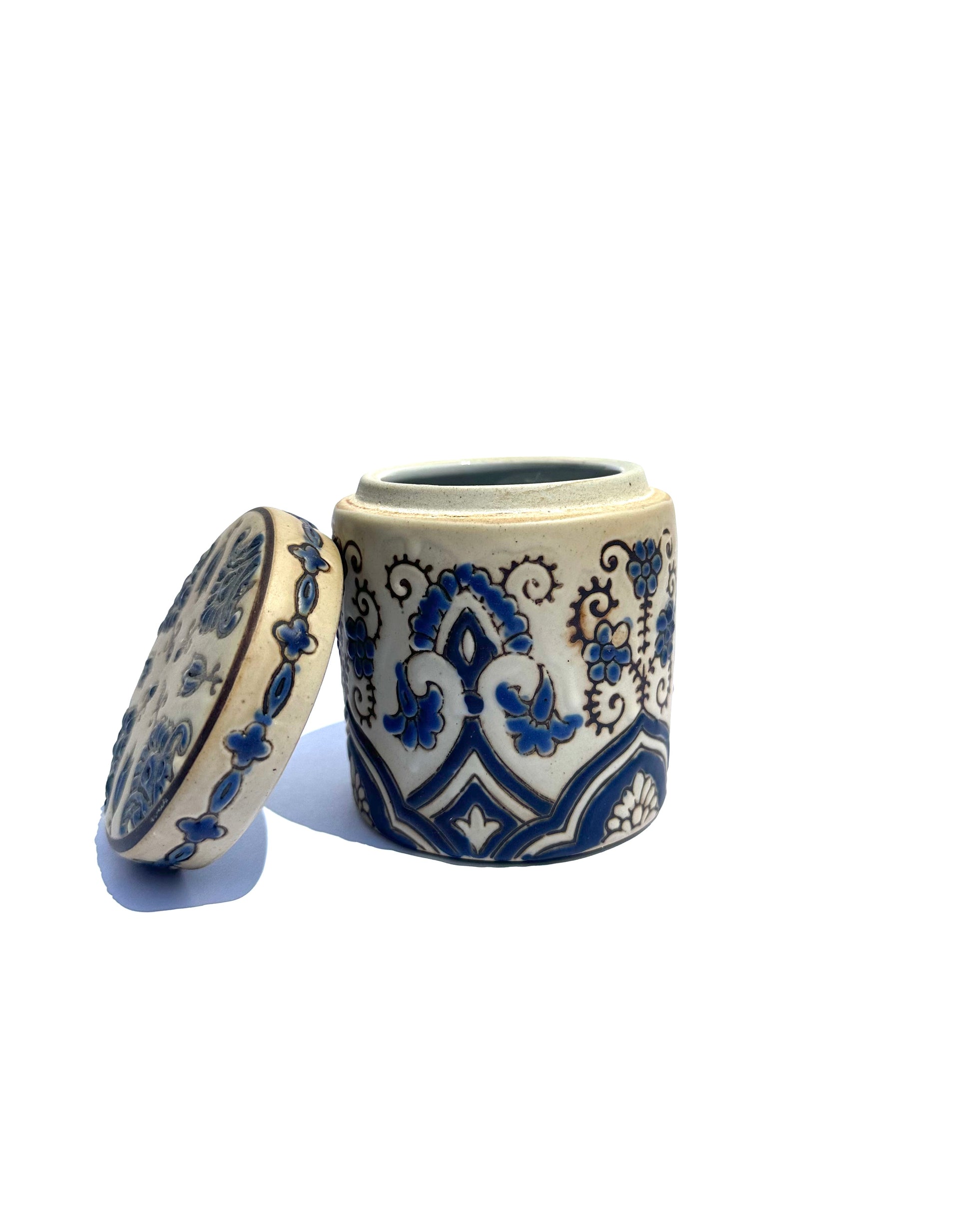Can be used as a decorative jar or for use as a vase or as a storage jar.