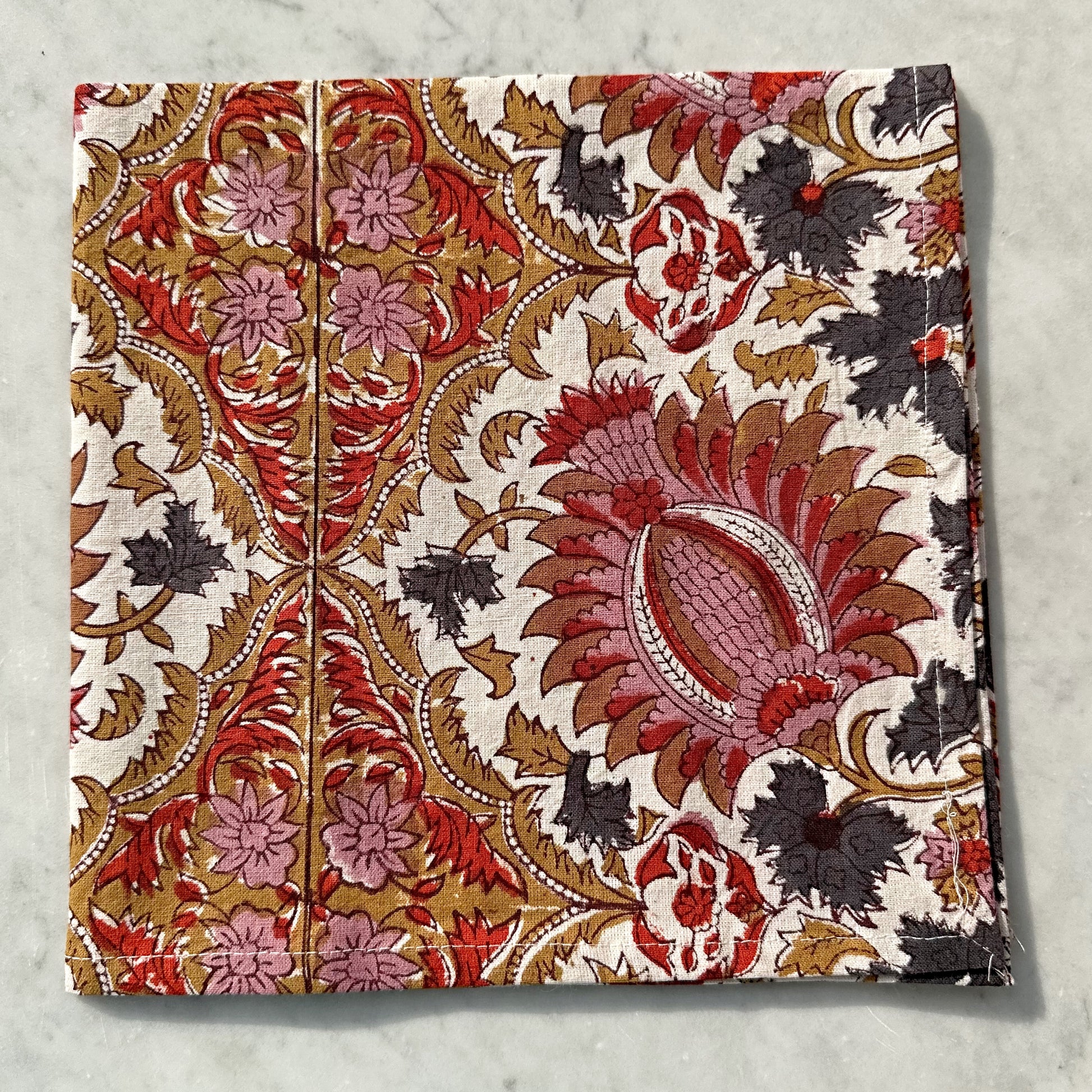 Handmade block-printed 100% cotton napkins in a variety of colours and patterns.