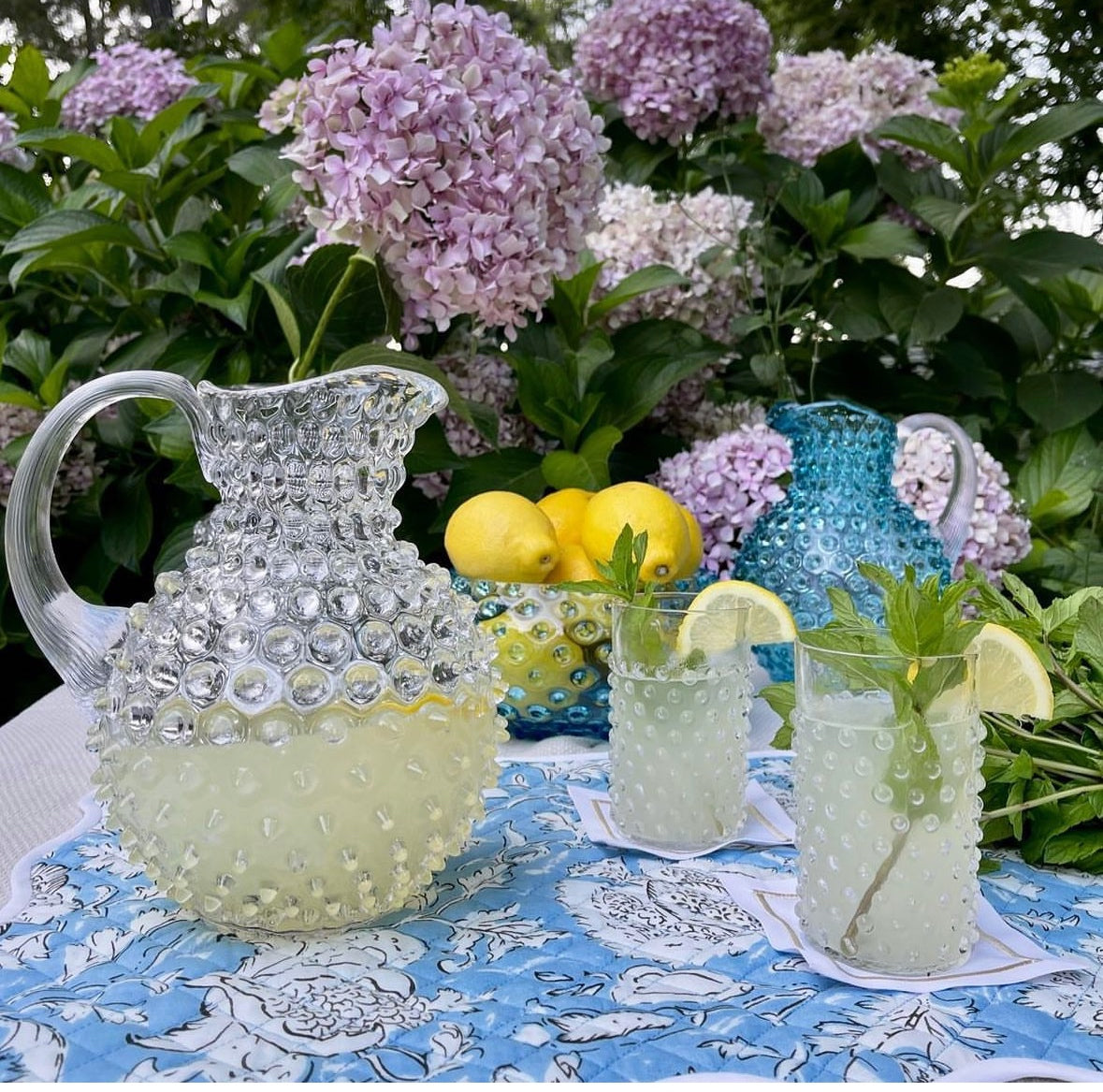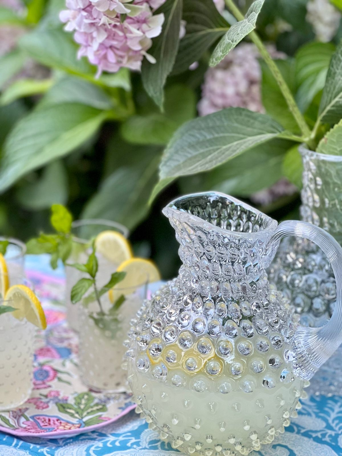 Jazz up your table setting with this hobnail crystal glass jug. Perfect for indoor or outdoor dining.