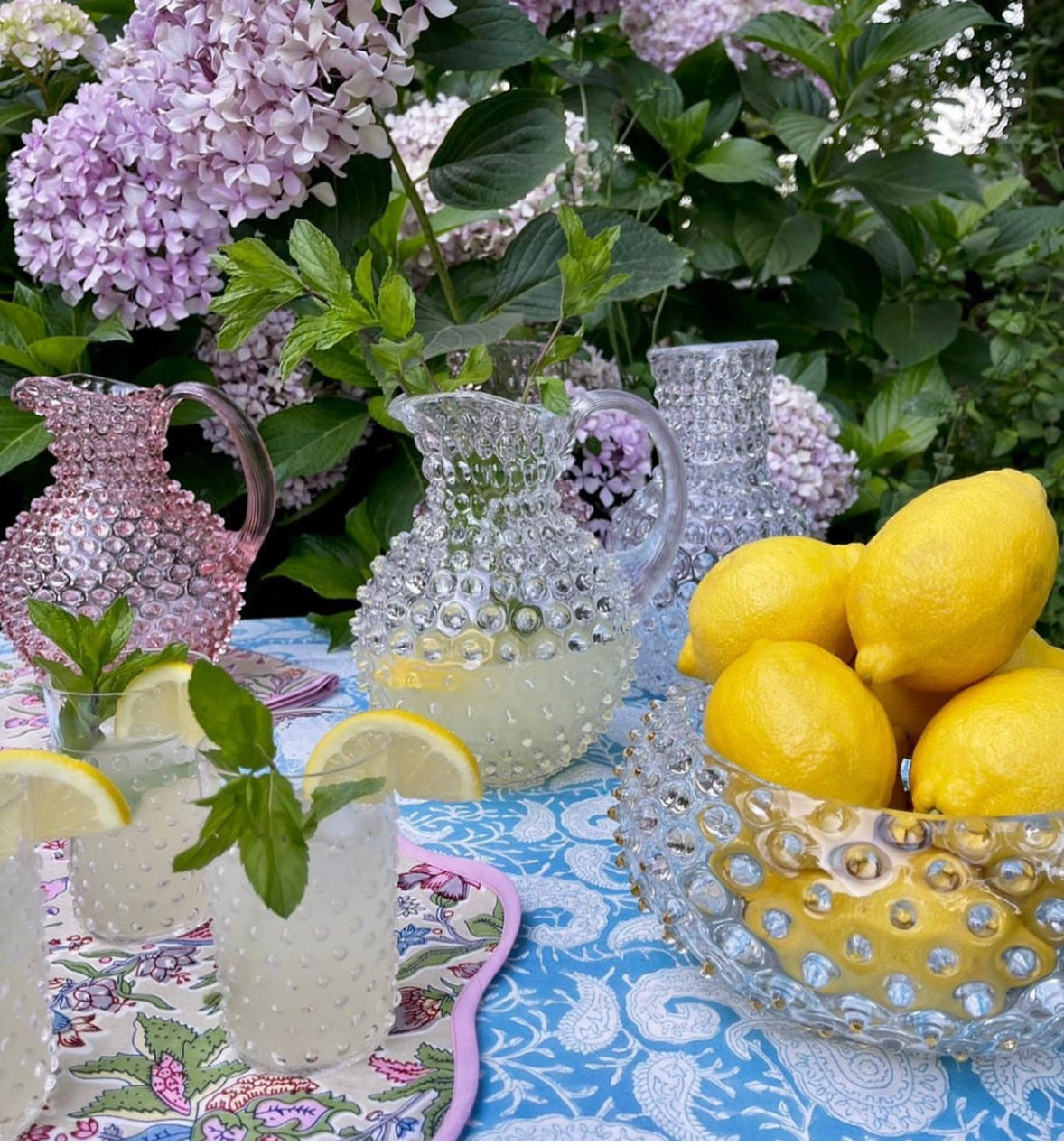 Jazz up your table setting with this hobnail crystal glass jug. Perfect for indoor or outdoor dining.