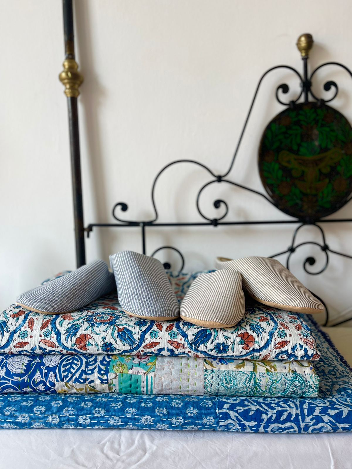 Soft, cushiony insoles, unisex soothing slippers. Organic Cotton memory foam soles allowing your feet to breathe while moulding to the shape of your feet overtime resulting in a customised fit that cushions your every step. Soles have a grip which is great for indoor surfaces.