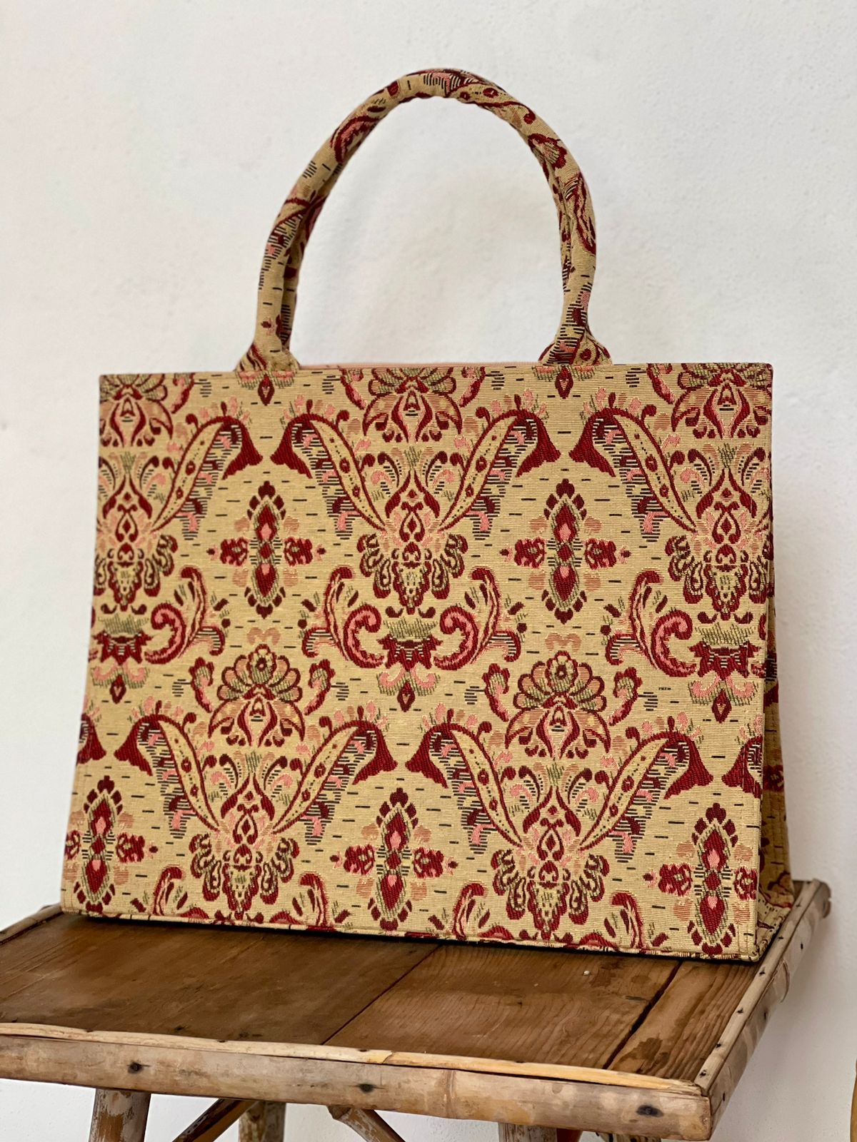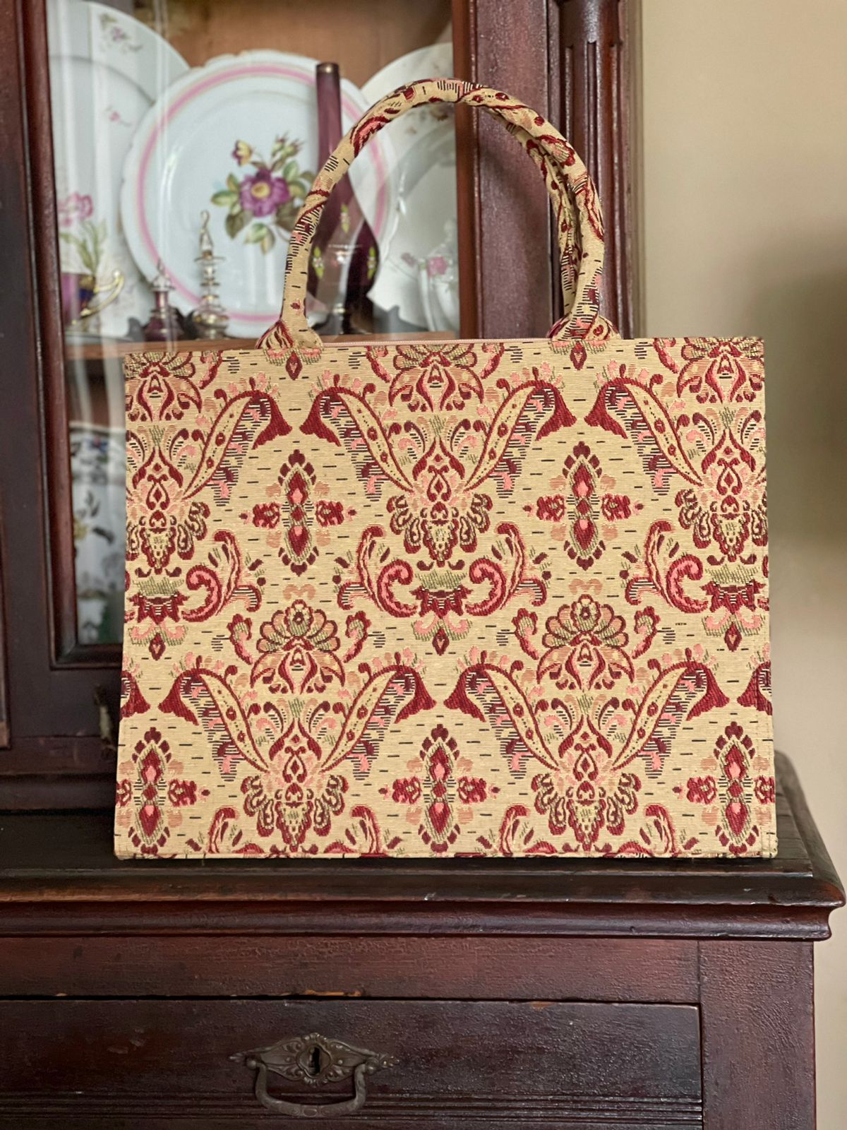 Handcrafted Jacquard Tote bag designed to hold all your essentials. Includes a zip closure and inside pocket. A classic piece you will carry for years to come.