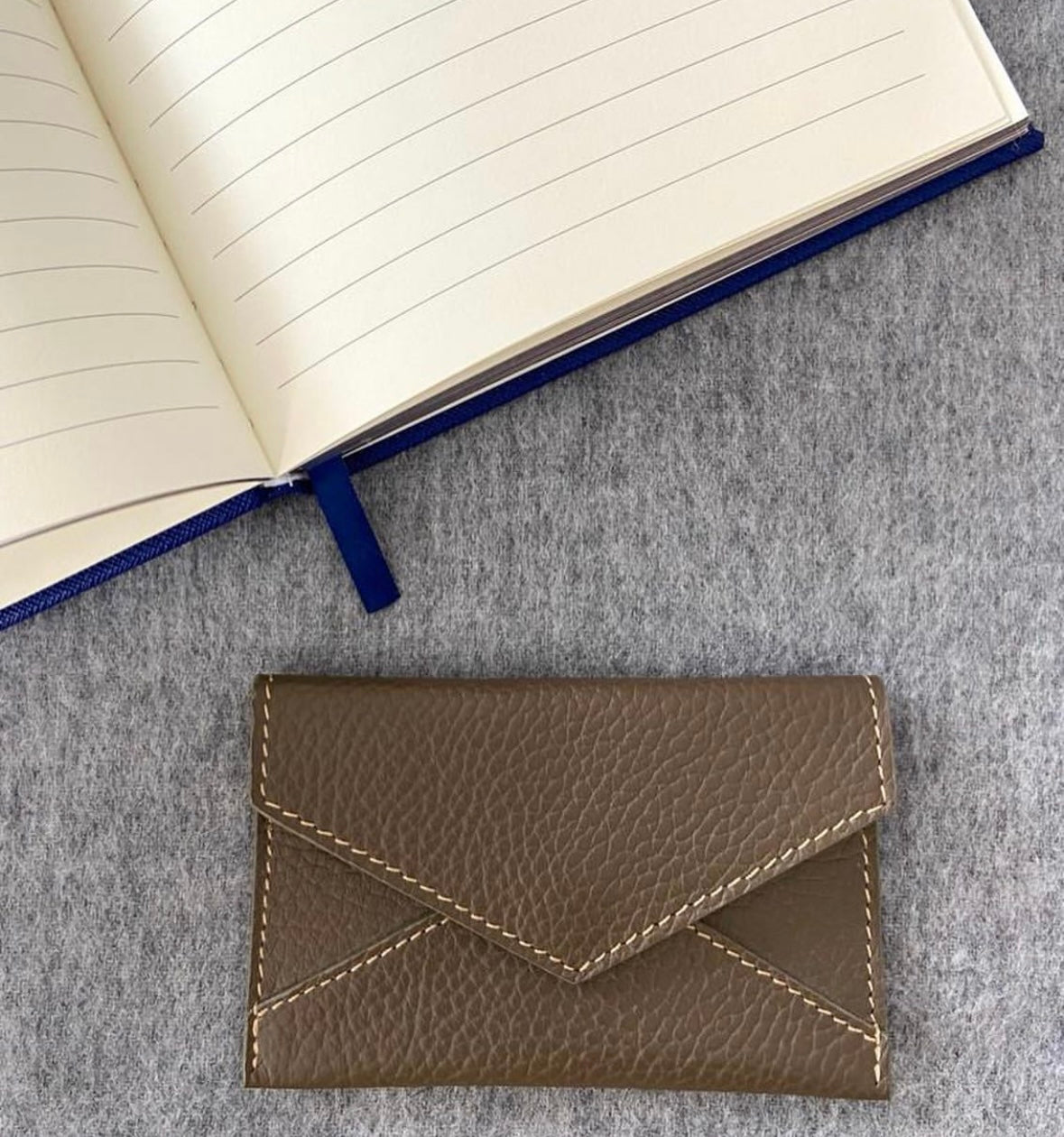Handmade leather credit card, business card or bank note holder. Made from calf leather with button closing.