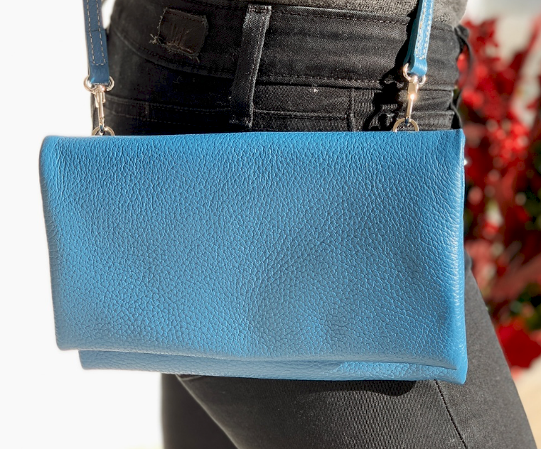 Soft small leather bag with the options of cross body or to be worn as a clutch. With a flap, two hidden practical pockets and one zip pocket. Perfect for use as a city bag with your essentials - phone, cash and keys. Can be worn underneath your coat for safety. Straps are detachable, can also be worn at nighttime as a clutch bag.