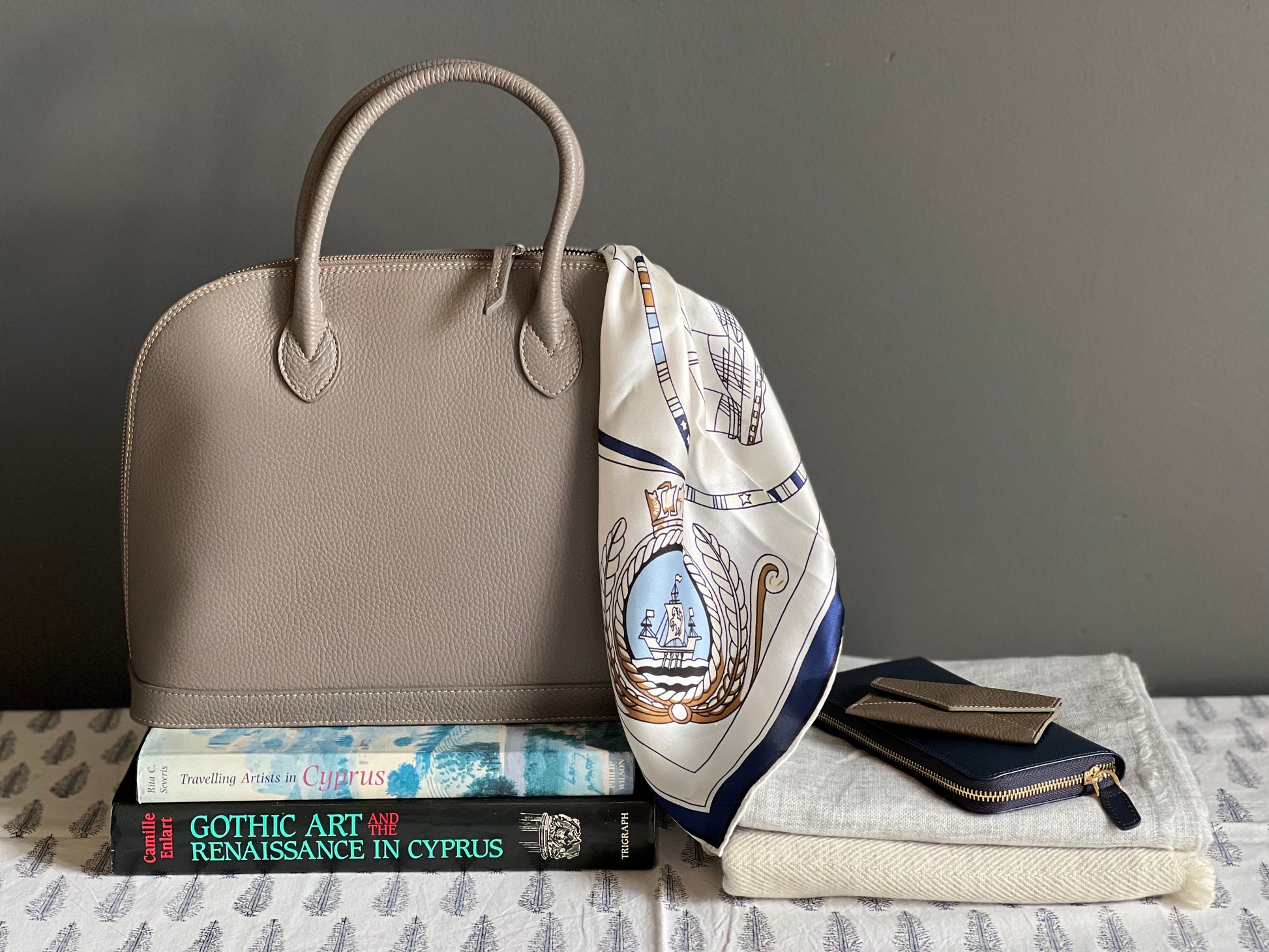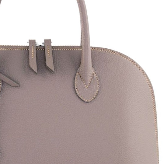 Classic calf Leather handbag with brass zip closure. Inside zip and phone pockets.