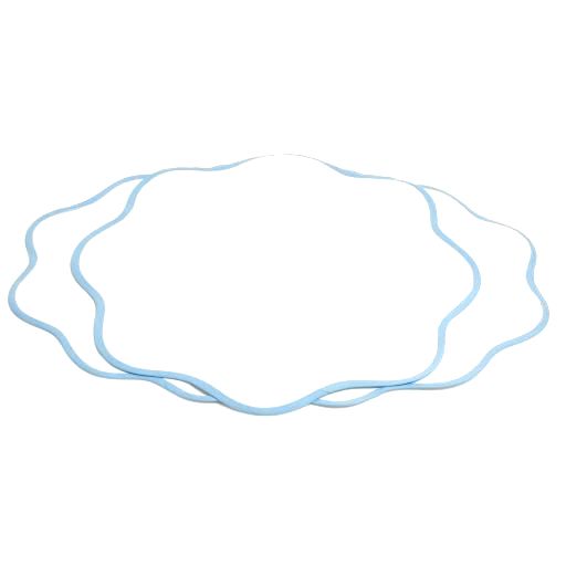 Study, Linen scalloped round placemats made from 100% linen fabric with baby blue edging.