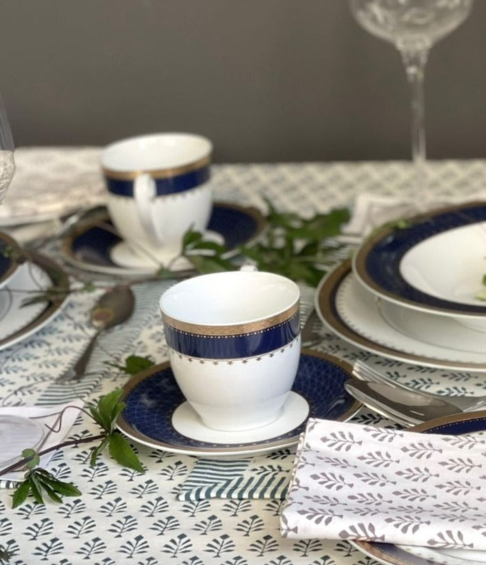 Terra Et Vita’s collection of Gold decal fine porcelain tableware. With exquisite pattern decorated with a refined gold details makes the perfect dinner set for any special occasion.