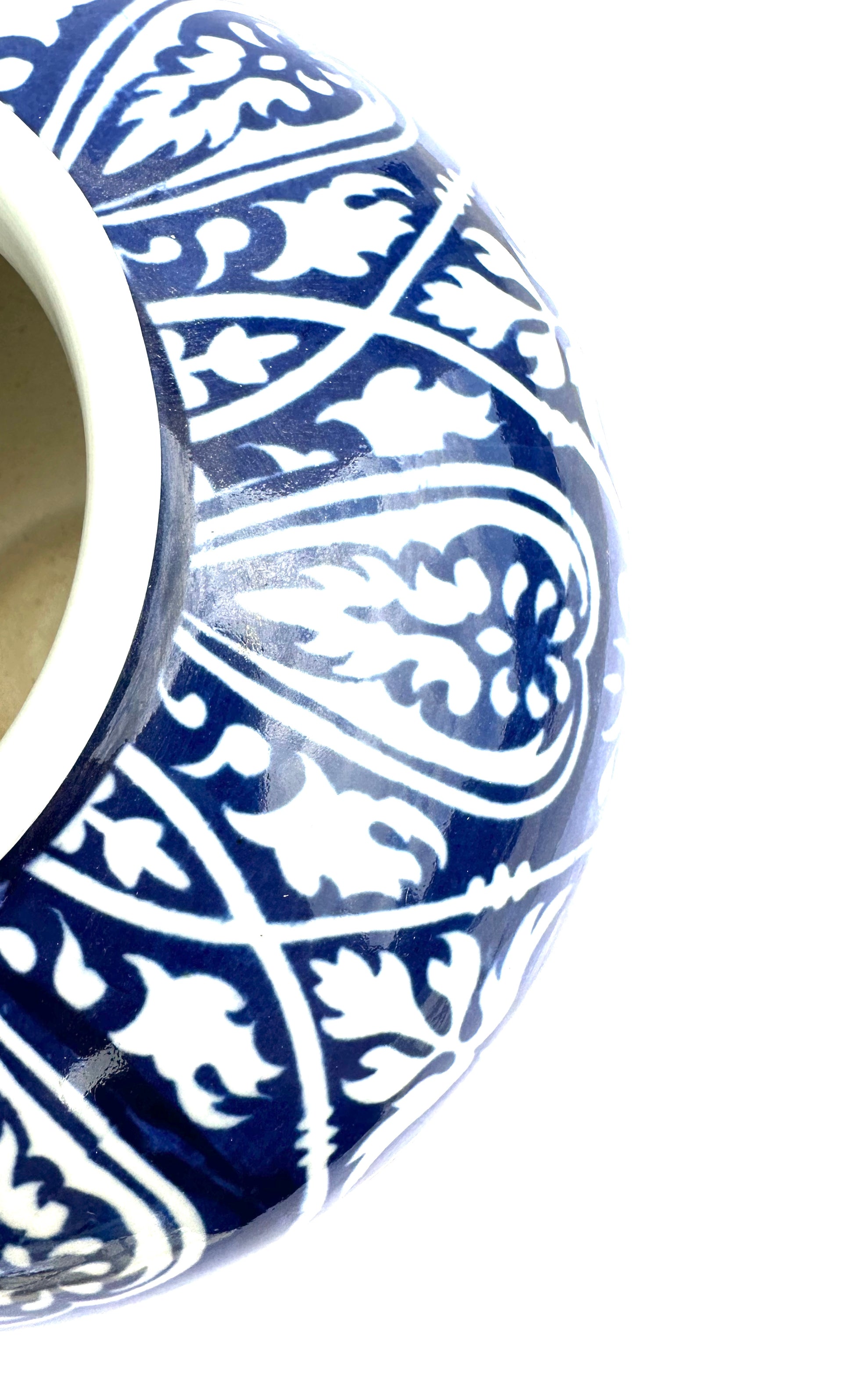 Blue and white Porcelain ball vase.  Use as a decorative piece with or without a flower arrangement.