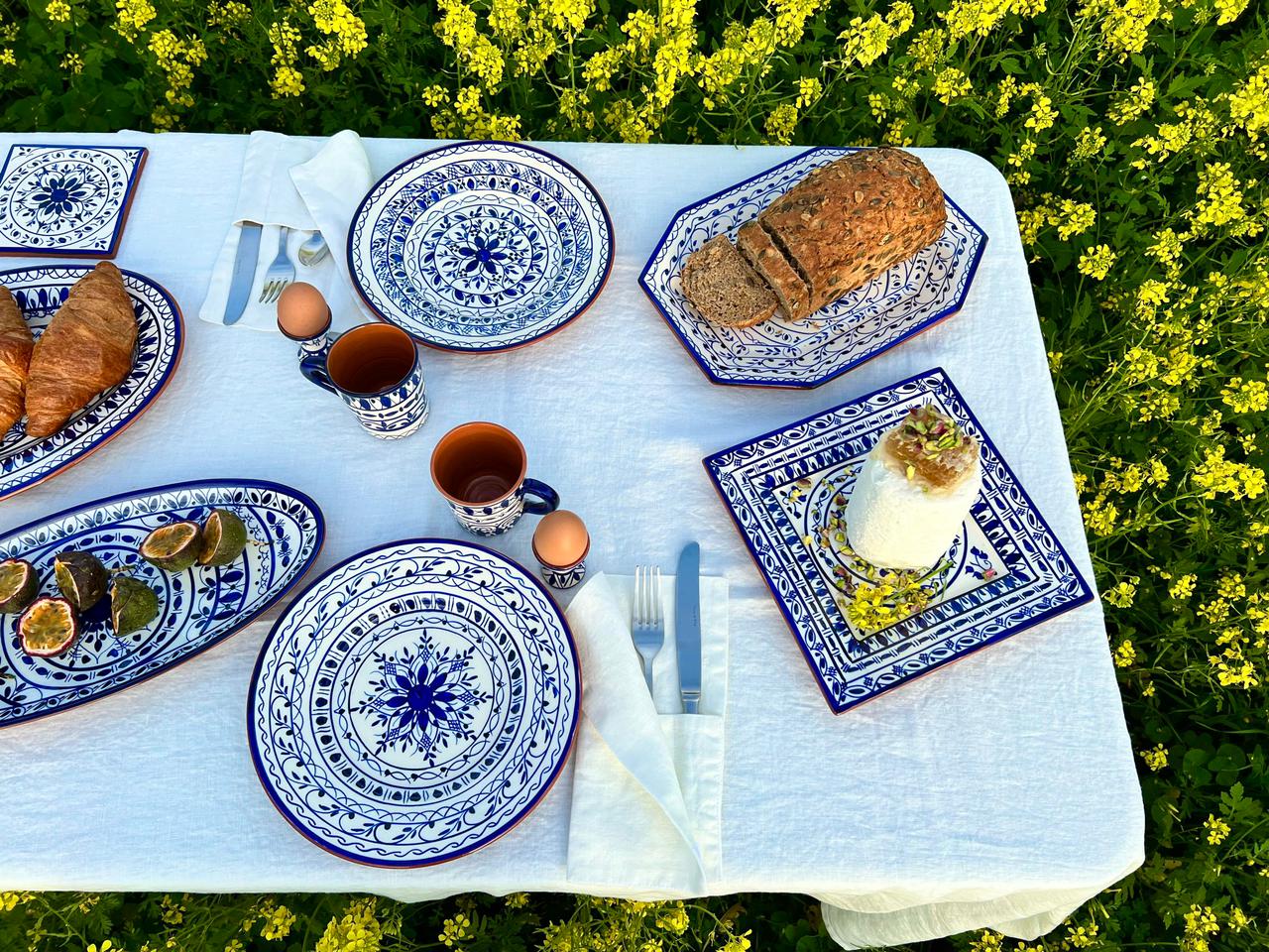 Our hand-made Portuguese collection brings a dash of liveliness to your table. Perfect for outdoor / garden dining during the spring and summer months.